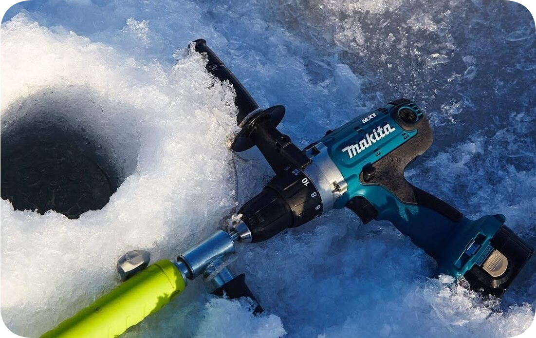 1 заряда аккумулятора хватает примерно на 85 + лунок при толщине льда более 1 метр